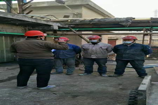 在完成相關(guān)作業(yè)的準(zhǔn)備工作,穿戴好各類防護(hù)用品,簽發(fā)了各類票證后,大家就進(jìn)入到檢修現(xiàn)場(chǎng)。加固冷卻塔前,必須先拆除冷卻塔壁板,清洗冷卻塔填料雜物及易燃易爆物質(zhì)。由于冷卻塔結(jié)構(gòu)腐蝕嚴(yán)重,填料內(nèi)部含易燃易爆物質(zhì)多,所以必須對(duì)冷卻塔進(jìn)行多次沖洗徹底除去易燃易爆物質(zhì)才能進(jìn)行動(dòng)火加固作業(yè)。