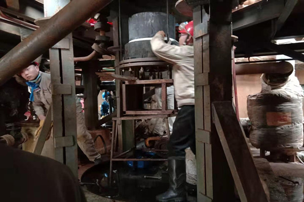 燈頭是蒸汽爐最核心的部件,它就如同蒸汽爐的“心臟”,保證著蒸汽爐的安全平穩運行。由于燈頭是石英材質,不能有任何碰撞。有著二十年檢修工作經驗沈培銀老師傅,像一名“將軍”一樣,指揮著大家拆燈頭,滿身的油污,像軍功章一樣掛在他的胸前。只見他拿來三根全絲螺桿,均勻地固定在燈頭支座上,隨著三只螺母的松動,燈頭就開始慢慢地向下移動,為了保證燈頭的平穩下落,三個人必須同時松動螺母,這需要高度默契地配合。 沈培銀老師傅不緊不慢地松動著螺母,并時刻提醒著其他兩個人的進度。汗水早已濕透了三人的衣服,裹挾著污漬的汗水不停地順著他們的臉頰滴落。愛開玩笑的同事,不失時機地說個笑話,逗得大家哈哈大笑,身上的疲憊感頓時消減幾分。