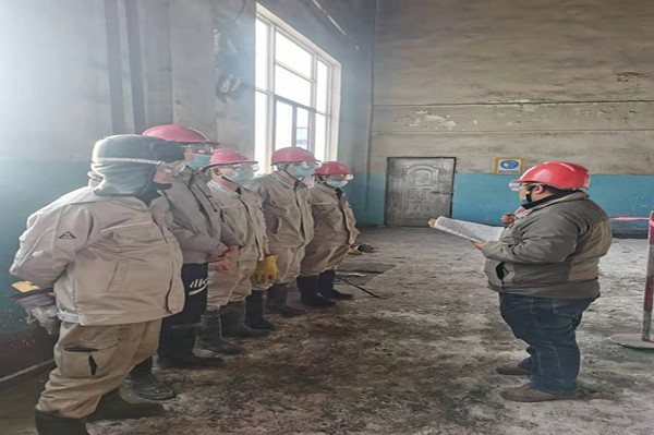 早上7:30分,只見參加檢修的維修工和操作工早已換好工作服全部抵達(dá)99%堿崗位,列隊(duì)站好聽從裝置長(zhǎng)和安全員在檢修前安排的各自職責(zé)分工,并且對(duì)需要作業(yè)的項(xiàng)目進(jìn)行了安全技術(shù)交底。此次檢修時(shí)間緊、任務(wù)重、勞動(dòng)強(qiáng)度大,人員有各裝置派來(lái)協(xié)助的維修工和崗位操作工,大家齊心協(xié)力,不怕困難,一定要保質(zhì)、保量地完成所有檢修任務(wù),并做到“四不傷害”絕不能出現(xiàn)任何人身傷害事故發(fā)生。
