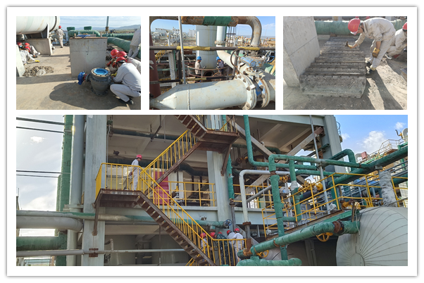檢修第一天,各崗位管線旁和設(shè)備前隨處可見(jiàn)檢修人員忙碌的身影,全體員工以飽滿的熱情和昂揚(yáng)的斗志全身心投入到檢修工作中。在檢修中錘煉了意志、增長(zhǎng)了才干、提升了能力。本次檢修主要涵蓋了現(xiàn)場(chǎng)設(shè)備閥門的維護(hù)保養(yǎng)以及安全運(yùn)行檢查,精餾高低塔清理,干燥流化床清洗等項(xiàng)目。