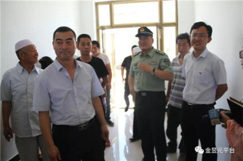 隨后,寧夏軍分區、青銅峽市人武部、金昱元公司代表來到了位于青銅峽市陳袁灘鎮唐灘村由青銅峽市人武部援建、金昱元公司捐助全套家具和家電的馬光祖家里,看望慰問了馬光祖家人,詳細詢問他們的健康狀況,了解他們生活上的困難,與他們親切交談,鼓勵他們要堅定信心,好好保重身體,度過幸福安詳的晚年。