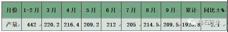 (一)1-9月國內電石產量持續下跌