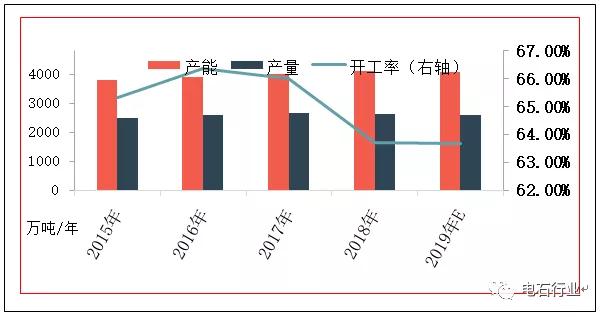 從電石供給能力看,一是從1-10月份來看電石價格起伏震蕩,甚至企業都來不及應對。二是國內電石產能依然較大,綜合考慮2019年電石去產能及減量置換新增產能等因素,供大于求的問題依然存在。