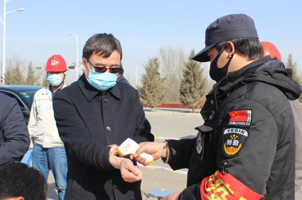 朱洪軍一行在疫情防控檢測(cè)點(diǎn)按檢測(cè)程序測(cè)量體溫、登記信息,詳細(xì)查看了疫情防控登記臺(tái)賬并到工作現(xiàn)場(chǎng)檢查。經(jīng)過細(xì)致檢查,對(duì)固原片區(qū)疫情防控工作給予了充分肯定。