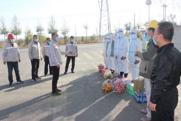 為提振士氣、鼓舞斗志,堅(jiān)決打贏疫情防控阻擊戰(zhàn),10月31日、11月1日,寧夏金昱元化工集團(tuán)股份有限公司總裁喬冠榮,監(jiān)事會(huì)主席郭復(fù)生,黨委副書記尚興,副總裁、固原片區(qū)總經(jīng)理王立軍,副總裁、青銅峽片區(qū)總經(jīng)理張立軍等領(lǐng)導(dǎo)組成慰問(wèn)組,分別到固原片區(qū)和青銅峽片區(qū)各疫情防控卡點(diǎn)慰問(wèn)奮戰(zhàn)在一線的防疫人員。